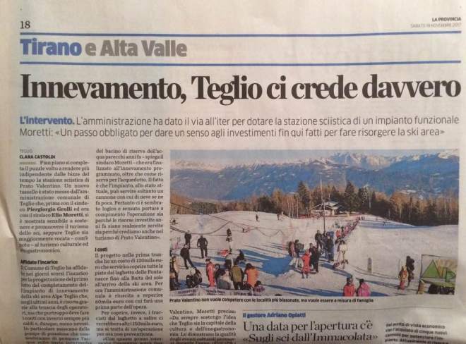 In tempi di sempre più profondi cambiamenti climatici, di imminente estinzione dei ghiacciai alpini (la principale riserva di acqua potabile a nostra disposizione, è bene ricordarlo), di palesi gravi problemi di siccità, e posto lo stato di fatto del mercato turistico invernale attuale, credere di poter rilanciare stazioni sciistiche (in passato già fallite, peraltro) attraverso nuovi impianti di innevamento artificiale è un po’ come affannarsi a nuotare in una piscina priva di acqua sperando di riuscire ad arrivare dalla parte opposta prima di sfinirsi inevitabilmente per l’inutile sforzo. La prova di una dissennatezza profonda nonché d’una grande mancanza di cultura, insomma.