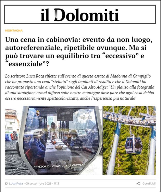 Anche qui, attraverso affermazioni reali ma rese funzionali a scopi particolari – ovviamente quelli degli impiantisti -, si cerca di giustificare l’attività sciistica con elementi oggettivamente marginali rispetto alla stessa e al suo impatto concreto nei territori, se non fuorvianti. Perché è sostanzialmente vero quello che viene dichiarato, tuttavia l’ecologicità e l’invasività degli impianti di risalita non si misura solo con il tipo di energia utilizzata, ma per come viene prodotta, sull’impatto ambientale nel territorio dell’infrastruttura, su quello visivo e sonoro nel paesaggio, su eventuali forme di inquinamento locale e del suolo derivanti dall’attività dell’impianto, dalle necessità manutentive… insomma, non si può farla troppo semplice. E quante centinaia di rottami di impianti non più attivi sono sparsi sulle montagne italiane che nessuno ha cura di smantellare bonificando di conseguenza il terreno coinvolto? Proseguiamo: che rappresentino un reale e concreto servizio di mobilità intervallivo che diminuisce il traffico automobilistico e limita importanti flussi di traffico su gomma è effettivamente una delle maggiori potenzialità degli impianti di risalita nei periodi non sciistici. Ma in quanti casi ciò avviene veramente? Quanti sono i territori che realmente potrebbero sfruttare tale potenzialità? E quanti di quelli che la potrebbero sfruttare la incentivano come dovrebbero in un’ottica veramente funzionale alla diminuzione del traffico automobilistico? L’unico territorio delle Alpi italiane nel quale la potenzialità degli impianti di risalita alternativi al traffico automobilistico risulta considerabilmente sfruttabile è quello delle Dolomiti: tuttavia, al netto di alcune iniziative certamente virtuose ma occasionali (come la chiusura in alcune giornate dei passi dolomitici) e di molte belle parole, non sembra che ci sia una reale volontà di sostituire le auto con le funivie e le telecabine, anzi.